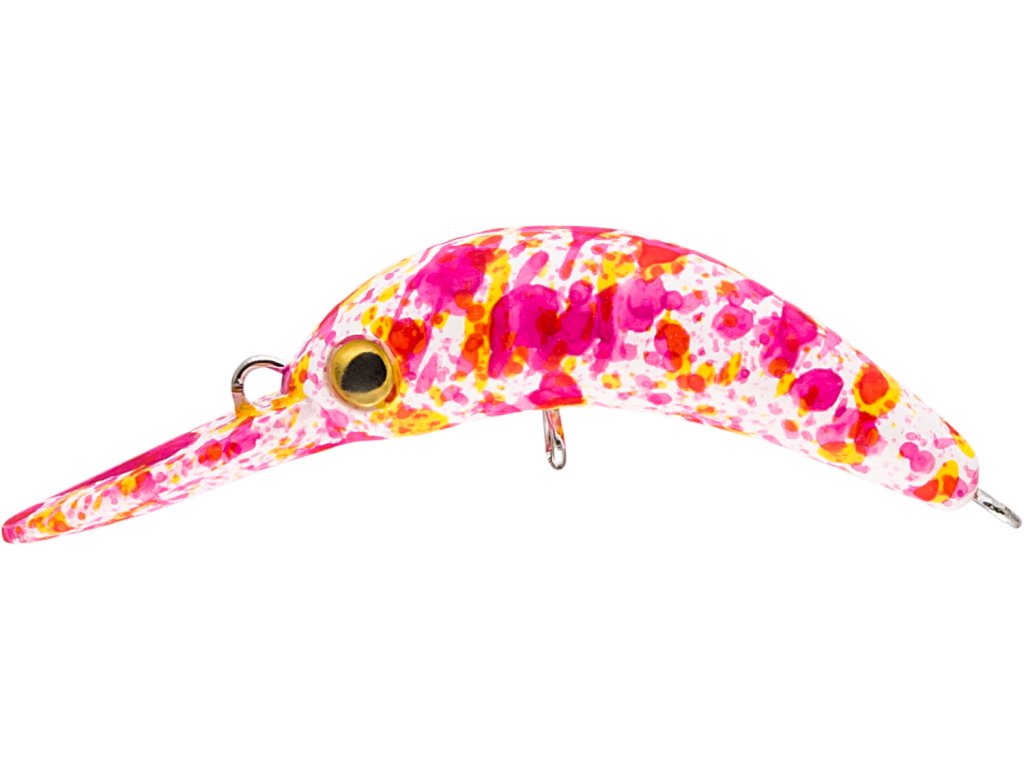 Malý wobler s velmi agresivním chodem, který nenechá chladného žádného pstruha. Vhodný na lov pstruhů duhových na jezerech. Osazený dvěma jednoháčky té nejvyšší japonské kvality.