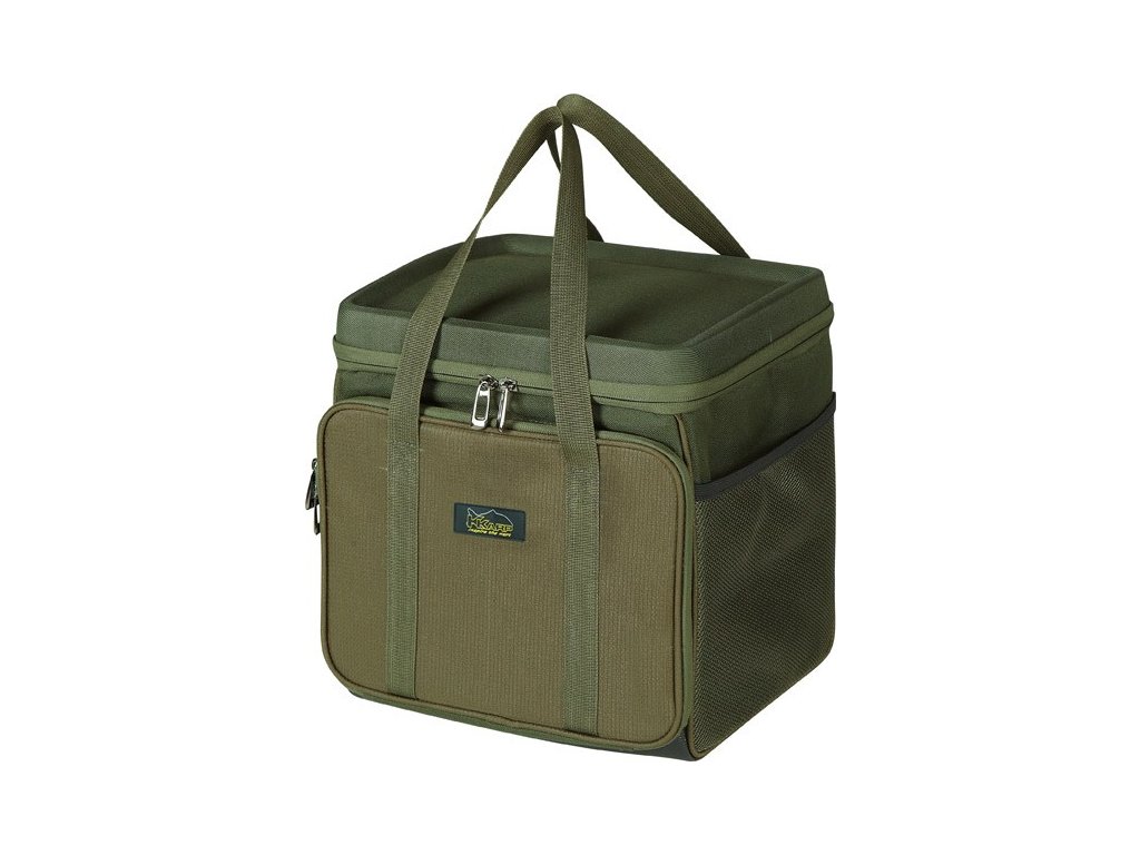 Větší organizér z nepromokavého materiálu, který nám může sloužit i na přepravu krmení. Tento organizér má pevnou pracovní desku, na které je možné připevnit příslušenství. Spodní větší prostor může sloužit na přepravu nástrah i návnad. Rozměr 28x28x35cm.