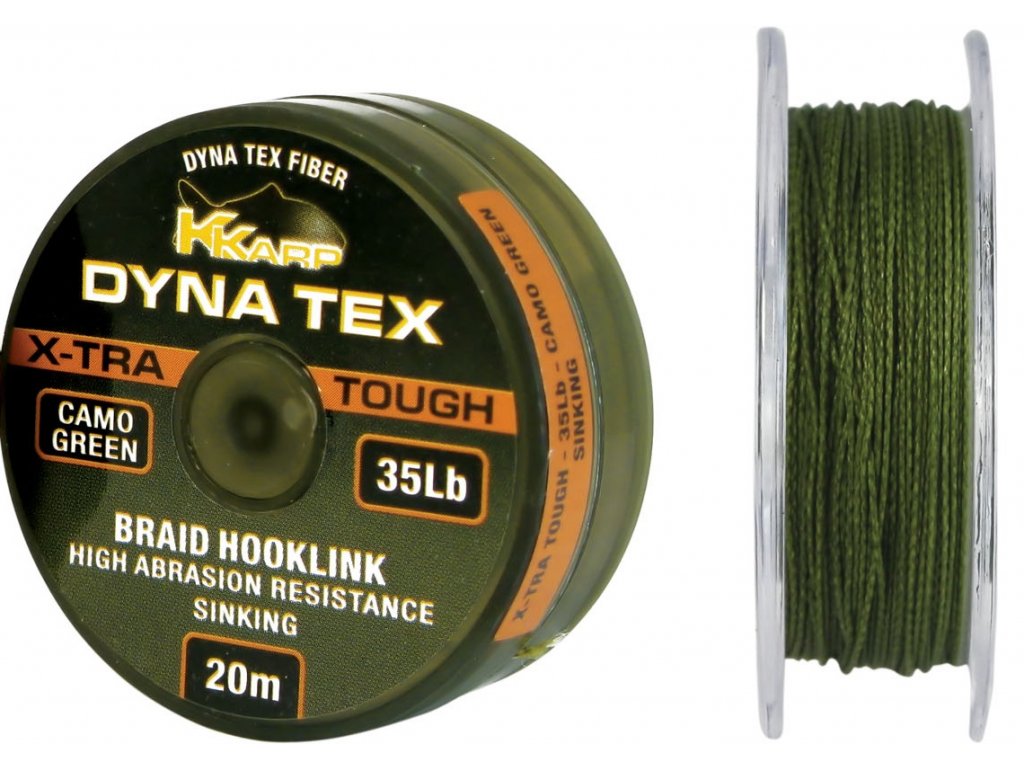 Kaprová šňůrka KKarp XTRA Tough z materiálu DYNA TEX pro zhotovení návazců a montáží. Vysoce odolná proti oděru, potápivá. Vhodná pro tvrdné dno.
