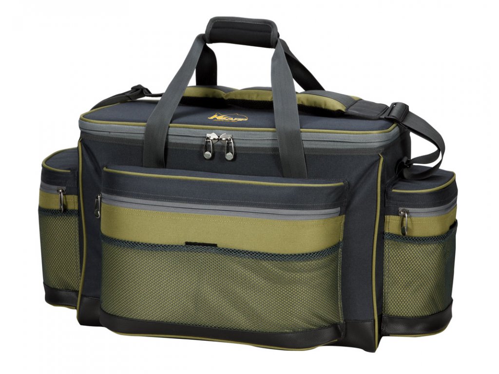 Velká kaprová taška z plastex materiálu. Má dvě velké boční kapsy a jednu velkou přední na drobnosti. Kvalitní zipy a popruh přes rameno.