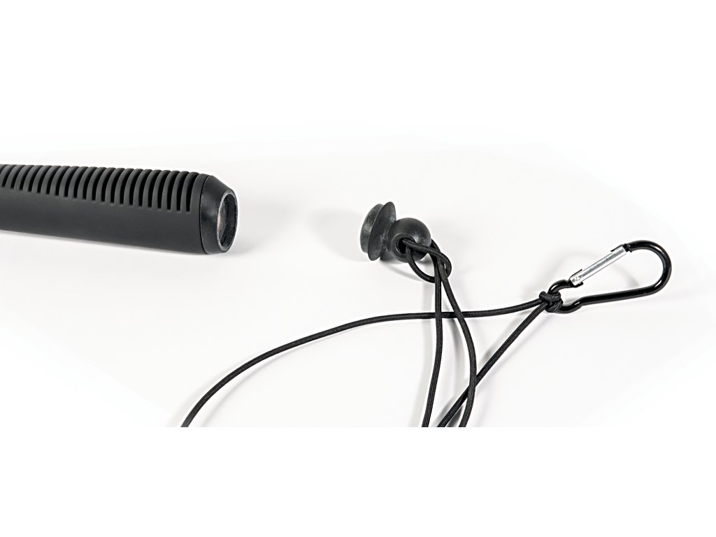 Ergonomická gumová rukojeť. Elastická guma pro připojení k opasku nebo vestě.