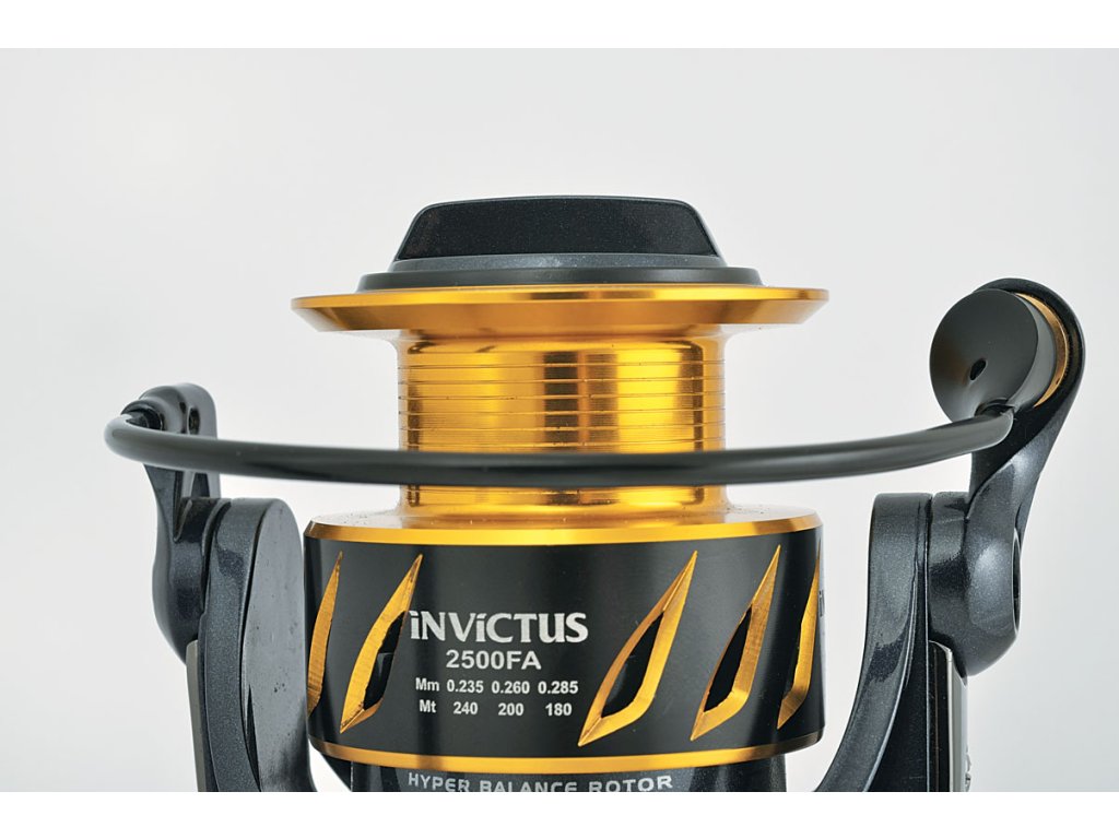 Naviják Invictus je nejnovějším uměleckým dílem s mnoha technologickými inovacemi. Je vyroben z dílu hliníku a grafitu s maximálním využití výhod obou navijáků. Na tělo navijáku byl použit hliník a je mimořádně pevné. Z tohoto důvodu jsou převody v perfektní pozici a zaručují dlouholetou bezproblémovou činnost. Oproti tomu je rotor vyroben z grafitu, jakožto z lehčího materiálu. Naviják je vybaven dvěma cívkami, obě kované za studena.Jedna je určena pro vlasec s větší kapacitou, druhá mělčí pro šňůry vybavená gumovým proužkem jako prevenci proti smýkání šňůry. Okraje obou cívek jsou do "V" což zvyšuje délku náhozů. Brzda je vyrobena z oceli a karbonových destiček a je utěsněna jako prevence zanesení nečistot a soli mezi jednotlivé disky. 9+1 ložisek zajišťuje hladký chod navijáku. Převodový poměr 5,2 : 1, navržen na mnoho a mnoho hodů. Naviják vhodný pro přívlač a feeder.