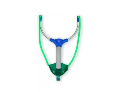 Velký prak s kovovými vidlicemi a zelenou dutou silikonovou gumouv pro krmení…